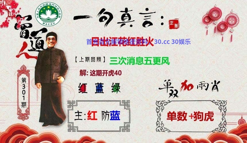 301期【解一句真言】:日出江花红胜火,日出,解日肖兔龙马蛇猴羊 王牌看好单双:单数+狗虎 |